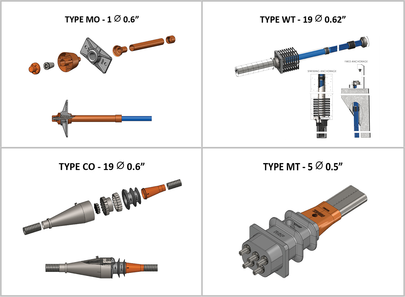 In accordance with EAD 160004-00-0301, the post tension kits are categorised into five individual systems: